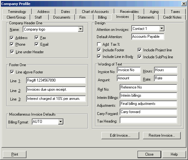 Design the invoice by choosing items here