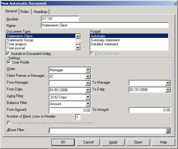 Once created, most automatic documents can be customized with right-mouse menu selections.