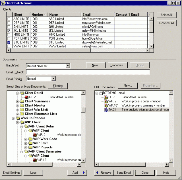 Email a group of documents for clients directly from Time using the Client Batch Email feature.